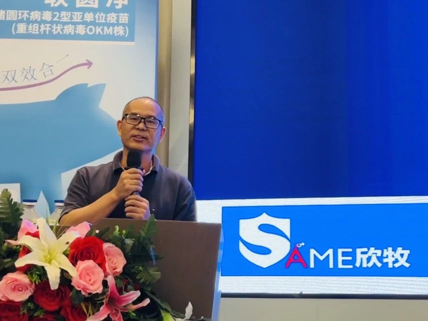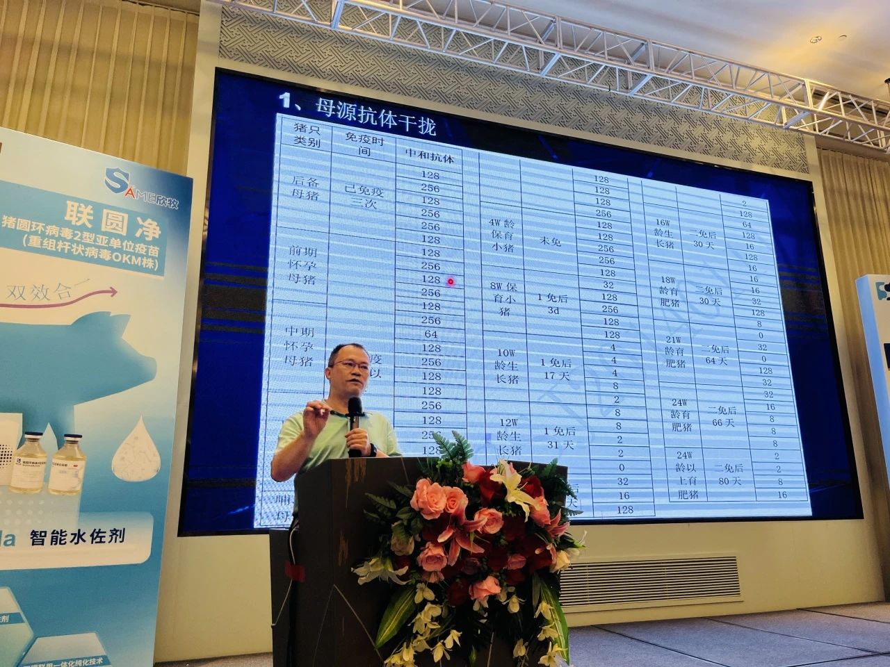 广东省农业科学院动物卫生研究所向华研究员作了《猪口蹄疫和圆环病毒的免疫评估与防控》的报告,通过对实际案例的分析,详细地介绍了猪场在口蹄疫、猪圆环免疫过程中存在各种问题,并给出了解决方案。他指出猪场圆环防控存在疫苗效果评估难,建议采取科学评估手段,中和抗体制定合理免疫,全程保护母、仔、肥,从而达成猪场PCV2控制的目的。