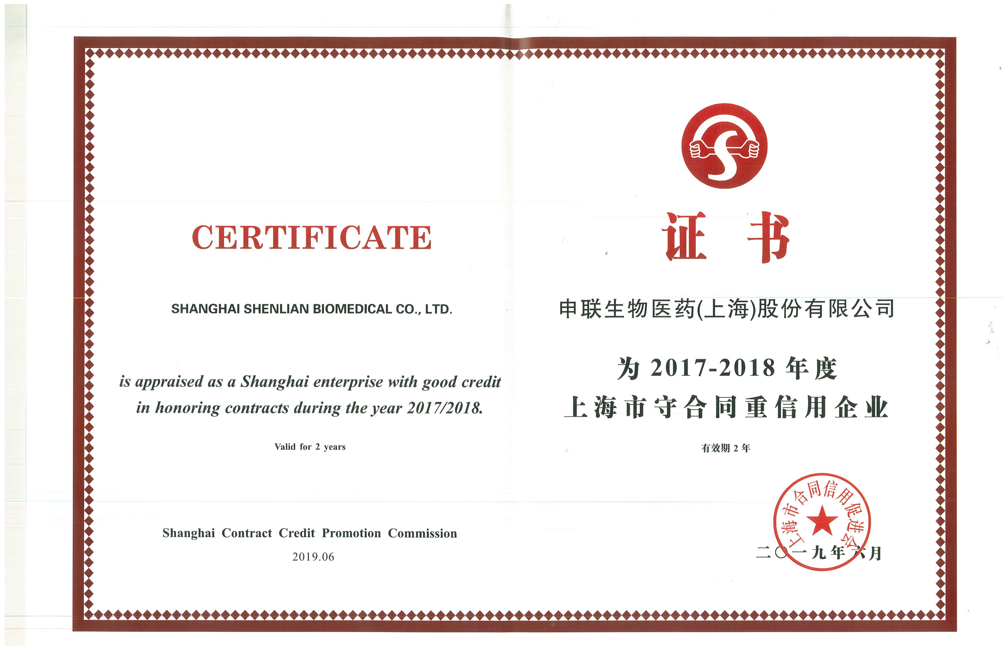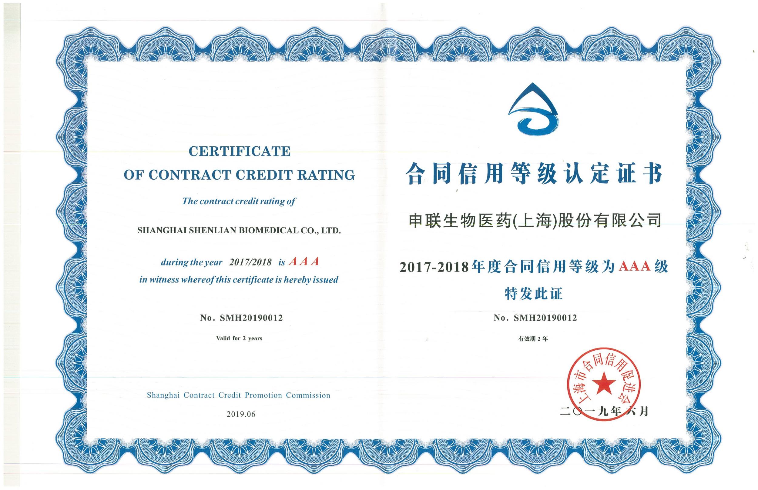 近日,经上海市合同信用促进会的综合考证及专家评审委员会审核,博天堂网址生物被评为“2017-2018年度重合同守信用企业”、“2017-2018年度合同信用等级AAA级等级认定”,并颁发奖牌及证书。这是公司开拓市场、强化管理、规范运作获得有关主管部门的制度化认可的重要标志。