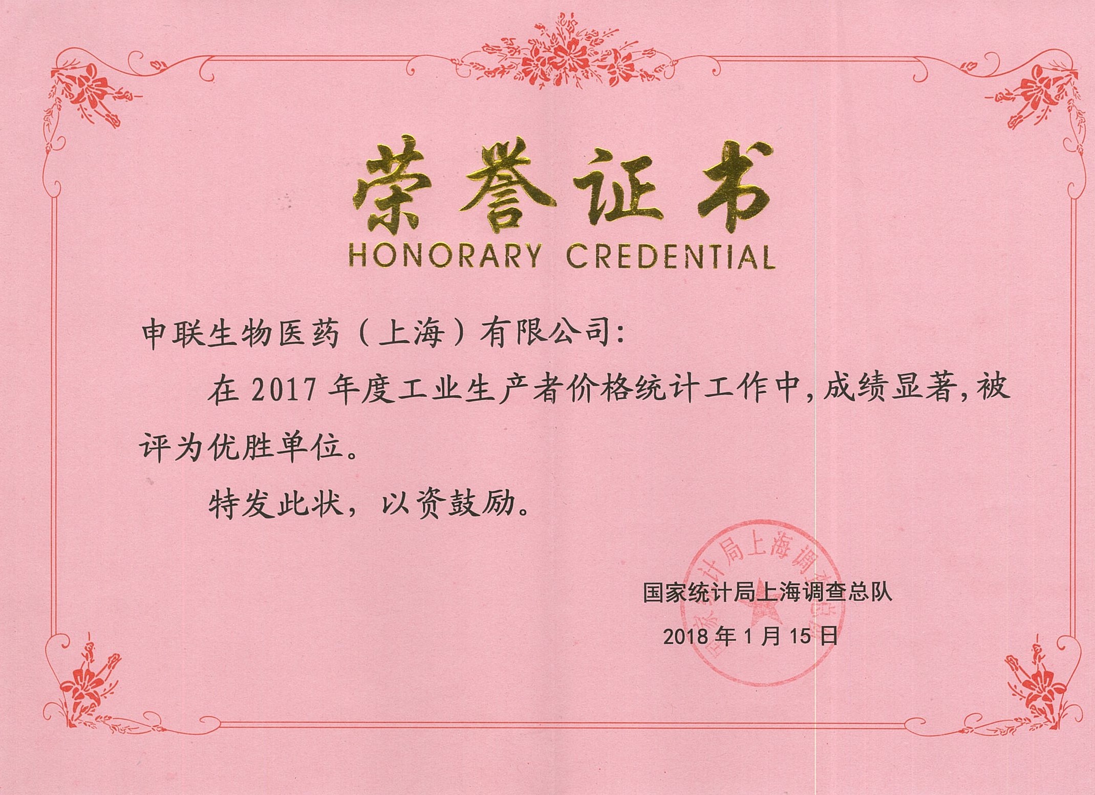 在2017年本市工业生产者价格统计工作中,我司大力配合国家统计局的调查工作,报表上报及时,数据质量过硬,基础工作完善。我财务部门以优异的工作态度和成绩获得了肯定,为企业争得荣誉,博天堂网址被评为“2017年度工业生产者价格统计优胜单位”